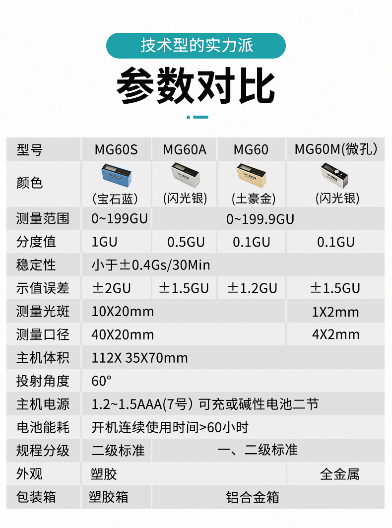 HRC華銳昌光澤度儀參數(shù)對(duì)比表_標(biāo)準(zhǔn)光源箱|對(duì)色燈箱|色差儀|光澤度儀|涂層測(cè)厚儀_HRC大品牌生產(chǎn)廠家