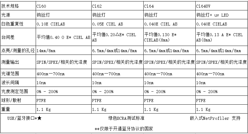 愛色麗Ci6x系列分光測色儀技術(shù)參數(shù)表