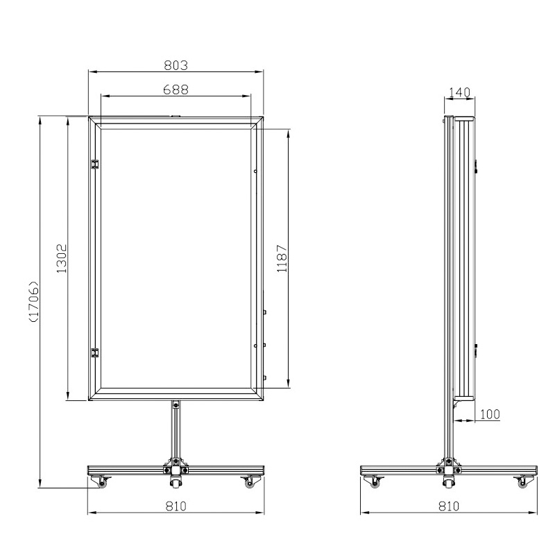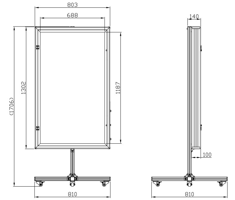 ◆ 燈箱外形尺寸(不含支架,見附圖1): 1302mm*803mm* 100mm