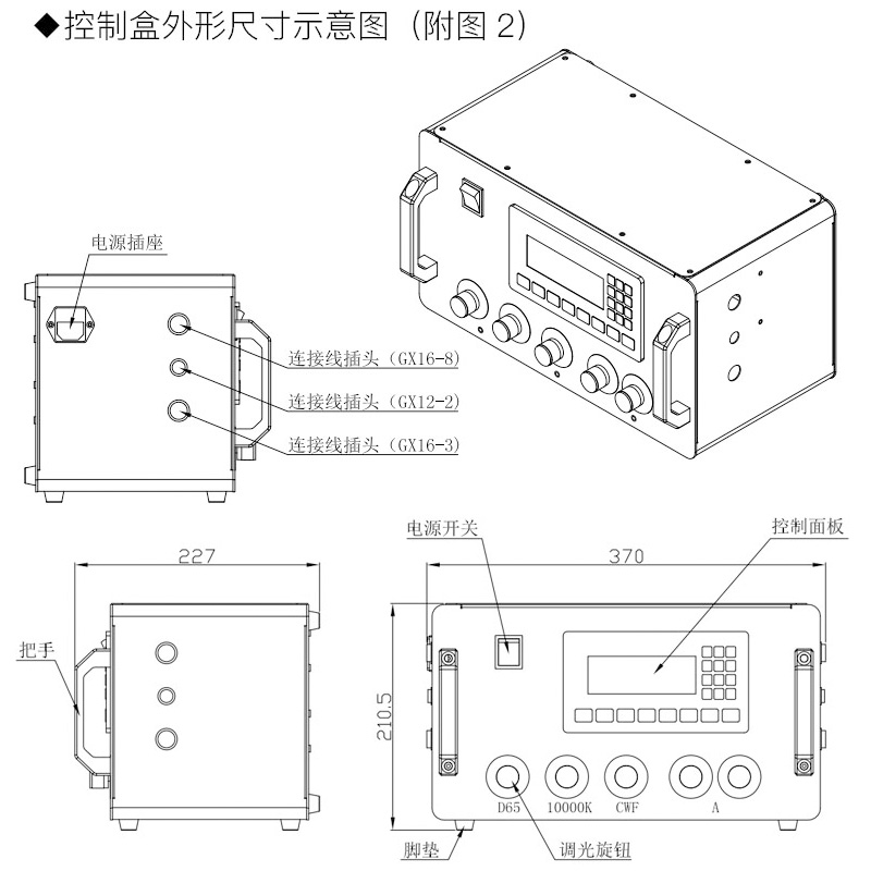 ◆ 控制盒外形尺寸(見附圖2): 370mm*21 0.5mm*227mm
