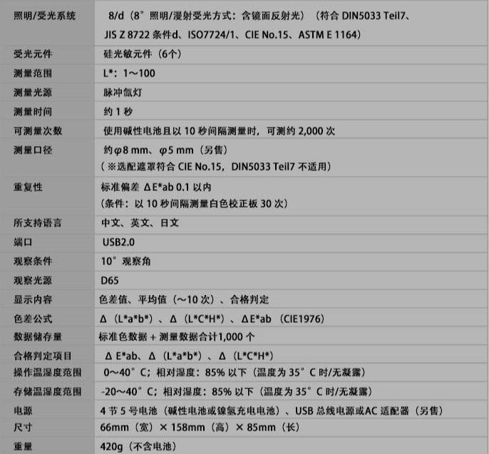 測量儀內(nèi)存中最多可保存1,000組測量數(shù)據(jù)(含基準色)。(設(shè)定后, 無需每次啟動電腦應(yīng)用程序,即可使用該功能。)