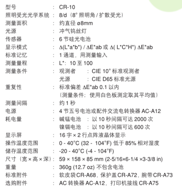 CR-10是一種體積小巧、電池驅(qū)動的手持便攜式色差計,適用于快速色彩控制。