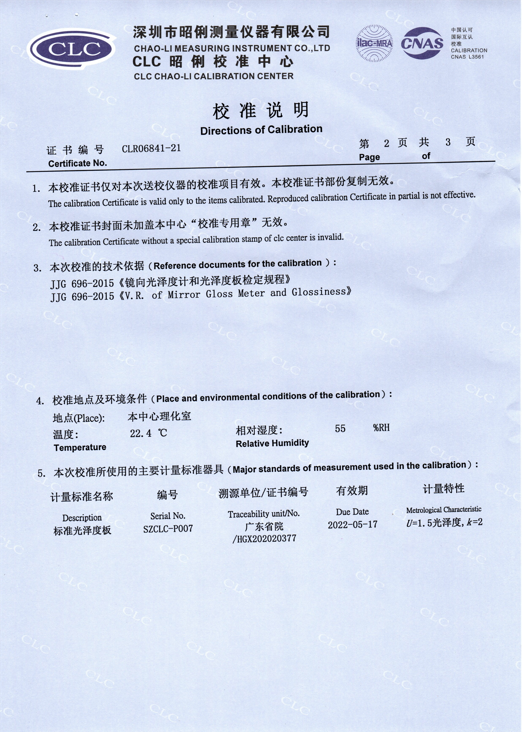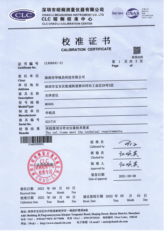 MG60系列光澤度儀校準(zhǔn)證書(shū)